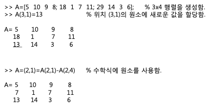 - 행렬이나 배열의 일부 원소들의 값을 갱신하거나 계산에서 특정 원소를 이용하려고 할 때