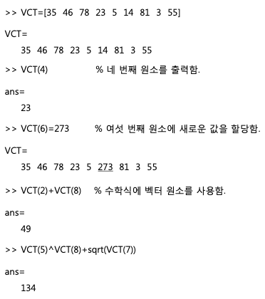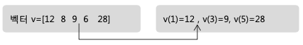 - 벡터의 한 원소를 나타내는 v(k)는 변수처럼 사용 가능
