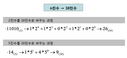 - 따라서 컴퓨터에서는 우리가 사용하는 10진법보다 2진법을 많이 사용