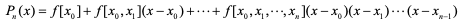 분할차분기호 []를 사용하여P (x)를 다시 표현하면 다음과 같으며 이를 Newton의 분할차분보간다항식(Newton's interpolatory divided difference fomula) 이라 함