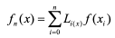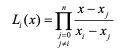 서로 다른 xi, i = 0, 1, ⋅⋅⋅,n에서 n+1개의 점 (xi , f (xi ))를 지나는 n차 보간 다항식은 다음과 같음.