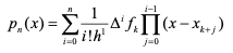 pn(x)를 점xk, xk+1, ⋅⋅⋅, xk+n에서 f(x)의 보간다항식이라 하면 앞장의 식 f[xk, x(k+1), ⋅⋅⋅, x(k+i)]= 1/(i!*h^l)*∆^i*fk을 뉴턴공식에 대입하여 다음과 같은 식을 얻을 수 있음.
