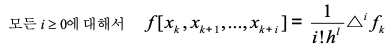 계수∆^i*fk는 전향차분표(forward difference table)에 의해 쉽게 구할 수 있음.