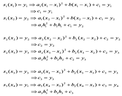 - 이렇게 구한 9개의 미지수로 2차 스플라인을 구함.