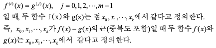 이 점들 중에서 서로 같은 점들이 있는 경우에 pk(xi ) = f(xi)의 의미를 알아봄.