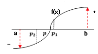 p1 =(a1+b1)/2 이라 하고, 만일 f(p1)=0 이면 p=p1 이고 f(p1)≠0이 f(p1)은 f(p1)이나 f(a1) 중 하나와 같은 부호를 갖음.