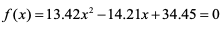 함수가 있다고 해보자. 위의 2차 방정식은 각 항의 계수들의 소수점으로 되어 있어 근을 쉽게 구할 수 없게 보이지만 근의 공식을 이용하면 쉽게 구할 수 있다.