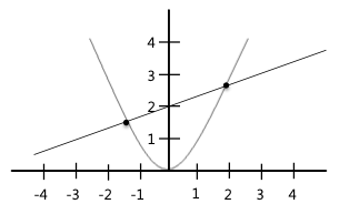 x^2 −1/2*x−2=0 의 근의 다음 두 방정식 y=x^2, y=1/2*x+2의 공통해와 같다.
