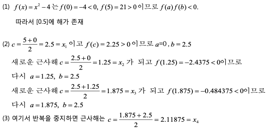 - 즉, 가능한 한 주어진 함수의 성질을 이용하여 근에 가까운 시작점 x0을 잡는 것이 바람직함.