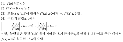 - 따라서 뉴턴법이 할선법보다 수렴속도가 더욱 빠르다는 것을 알 수 있다.