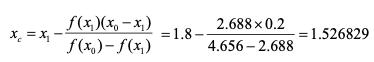 이 값을 다시 x0=1.8, x1=1.526829 라고 두어 다시 xc를 구한다.