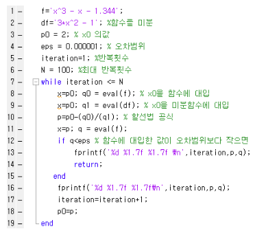 5) 뉴턴방법 예제(MATLAB)으로 구하기