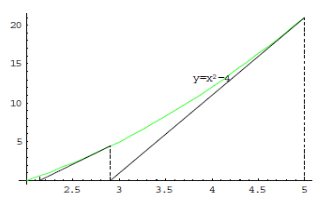 x^2−4=0의 근사값을 x0 = 5 에서 뉴턴 방법으로 구하여라.