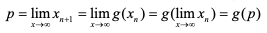 이 공식을 써서 만들어지는 수열 x1, x2, x3, ...이 어떤 점 p로 수렴하고 g(x)가 연속이라 하면