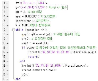2) 고정점 반복법 알고리즘
