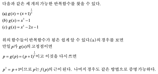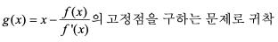 따라서 함수 g(x)의 고정점 p가 함수 f(x)의 근이 되므로 함수 f(x)의 근을 구하는 문제는