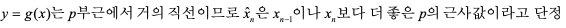 한편 y = g(x)가 p와 x(n-1)사이에서 거의 직선에 가까운 곡선이면 xnˆ은 고정점에 아주 가까워 지므로 xnˆ은 p의 좋은 근사값이 됨.