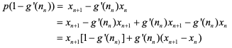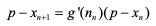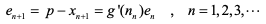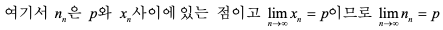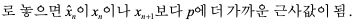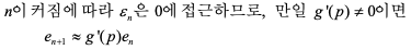 여기서 x(n−1), xn이 p에 수렴하므로 충분히 큰 n에 대해서는 ρn ≈ p ≈ nn 이므로
