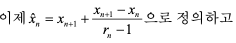 이 방법을 계속하면 수열 x0, x1, x2, ⋅⋅⋅으로부터 식에 의해서 수열 x1ˆ, x2ˆ, x3ˆ, ⋅⋅⋅을 구할 수 있음.