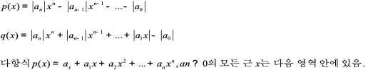 np를 다항식 p(x)의 양의 근 (positive root)의 개수라 하고 v를 다항식 p(x)의 0이 아닌 계수들의부호가 변하는 횟수라 하면np ≤ v.