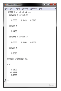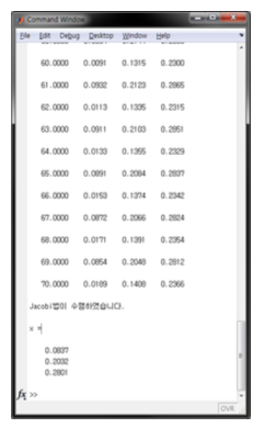 disp(‘Jacobi법이 수렴하였습니다.’);