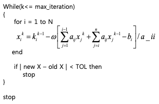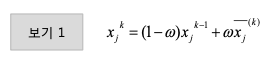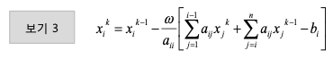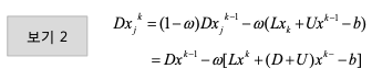 - Gauss-Seidel 방법으로 구한 근사값을 xj 라 하면 SOR방법으로 구한 k번째 근사해는 다음과 같이 정의함.