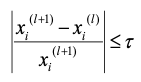 - 상대오차한계를 τ라고 할 때 모든 i=1, 2, ...n에 대해서 다음을 만족하면 해를 택함.