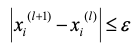 - 절대오차한계를 ε이라고 할 때 모든 i=1, 2, ..., n에 대해서 다음을 만족하면 해를 택함.
