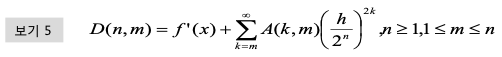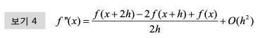 보기 1에 대입하여 보기 2와 같이 정리하여 f’(x)의 오차를 O(h2)에서 O(h4) 로 향상