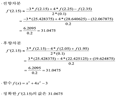 3) 1차 전방 및 후방 근사식을 이용한 근사값 계산