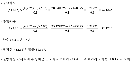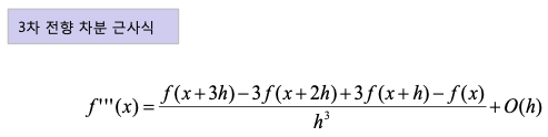 - 전방차분 및 후방차분 근사식의 오차는 O(h)