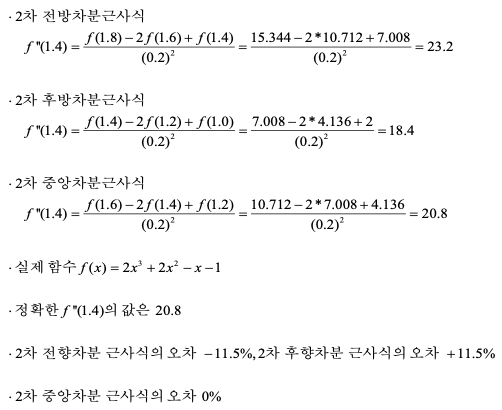 7) 2차 전방, 후방 및 중앙 차분 근사식의 예제