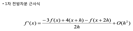 -> 전방(forward) 혹은 후방(backward) 유한차분 근사식이 필요