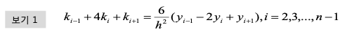 보기 1의 식에서 스플라인의 2차 미분인 ki 찾음