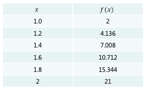 다음 표는 어던 함수 f(x)에 대한 자료이다. 전향차분 근사식과 후향차분근사식을 이용하여 f’(2.15)의 근사값을 구하여라.