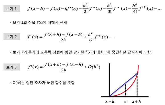 보기 3을 통해 2차 중앙차분 근사식을 얻음