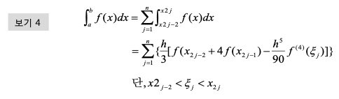- 구간을 세분화하여 Simpson공식을 사용하여 오차를 줄 일 수 있음