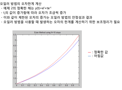 - 테일러 급수에서 유도된 방법으로 비교적 오차가 크게 발생
