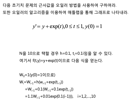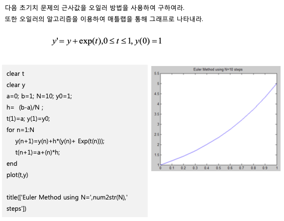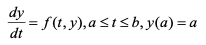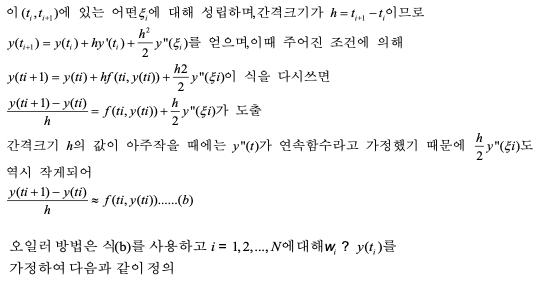 - 초기치미분방정식 y’(t)=f(t,y), a≤t≤b, y(a)=y0의 수치적 해를 구하는 방법