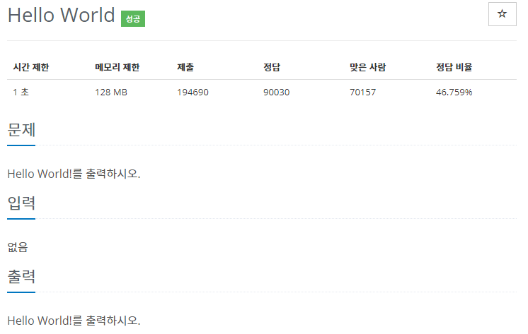 알고리즘/백준 Hello World 슈도코드 2019. 9. 8. 10:47 #include <stdio.h> #include <iostream>using namespace std; int main(void) { cout<<"Hello World!\n"<<endl; return 0; } 공유하기 게시글 관리 pSeudoCode '알고리즘 > 백준' 카테고리의 다른 글 A+B (0) 2019.09.08 등록 (0) 2019.09.08 개 (0) 2019.09.08 고양이 (0) 2019.09.08 We love kriii (0) 2019.09.08 '알고리즘/백준' Related Articles 등록 개 고양이 We love kriii