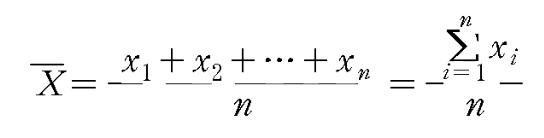 표본전체의 자료를 합하여 자료의 총 관측수로 나눈 값. 표본의 크기 n, 개별 관측치를 Xi.