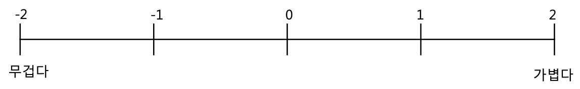 • 1부터 시작하는 양의 수를 표현하는 것이 일반적이나 가운데 척도를 0으로 하여 좌우를 -,+로 표현하기도 함
