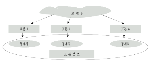 표본으로부터 도출되는 표본통계량은 표본을 어떻게 구성하는가에 따라 다양하게 나타날 수 있음. 따라서 표본통계량은 결과를 예측할 수 없으므로 확률변수가 되며 표본통계량의 확률 분포를 표본분포(sampling distribution)라고 정의. 표본평균의 분포, 표본비율의 분포, 표본분산의 분포 등이 대표적.
