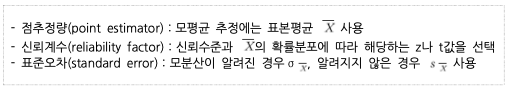 점추정량±신뢰계수×표준오차의 형식으로 구해짐.