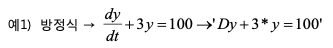- eq는 상미분방정식의 독립변수를 의미하며 미분의 경우 변수 앞에 문자 D를 추가